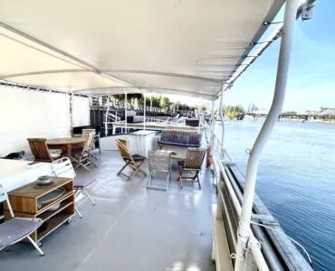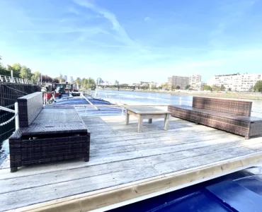 l’Agence du Fleuve est heureuse de vous proposer à la vente une péniche d’habitation de type Luxmotor de 180 m2 amarée sur un quai aménagé à Levallois Perret à 10 minutes de la porte Maillot et 5 minutes du Pont de Levallois.