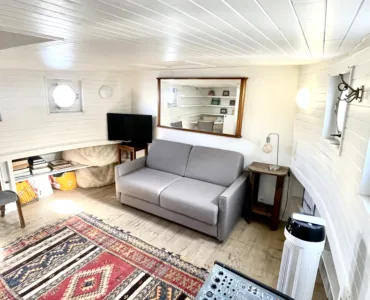Cette péniche présente de beaux volumes d’habitation et une belle hauteur sous plafond qui apportent beaucoup de sérénité à l’ensemble.