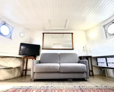 Chaleureuse et colorée, cette péniche d’habitation, familiale, propose 4 chambres, 2 salles de bain, 2 wc et un grand espace de vie (9,9×4,75 soit 47 m2) avec sa cuisine ouverte. La disposition des chambres est idéale pour une famille nombreuses. Un studio indépendant accessible par l’extérieur offre un espace calme et idéale pour se concentrer et se relaxer.