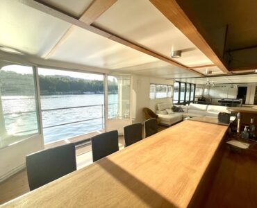 Ce véritable loft flottant, sur une base freysinet, de 340m2, propose 5 chambres, 3 salles de bain, 3 wc, une grande cuisine américaine, une entrée imposante, et plusieurs salons, dont un salon “cathédrale”, de 40 m2 avec une hauteur sous plafond de 4,46 m2, une salle de billard, un espace de projection home cinéma… parfaitement équipée et entretenue avec soin et très bon goût, amarrée sur un quai avec vue unique sur la Seine, à Boulogne Billancourt.
