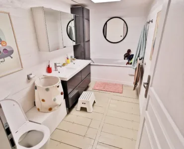 Le logement principal, entièrement rénové en 2019 selon les normes isolation RT2012, comprend une grande pièce de vie de 54 m2, lumineuse avec cuisine ouverte, salle à manger, salon avec cheminée, un bureau/chambre à l’avant, et un espace nuit avec 3 chambres, 2 salles de bain, et une buanderie à l’arrière.