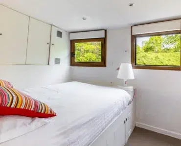 On y trouve également 4 chambres, une salle de bain et une salle de douche. À l’arrière du bateau se trouve un appartement indépendant avec une chambre, une salle de bain, une cuisine équipée et une terrasse.