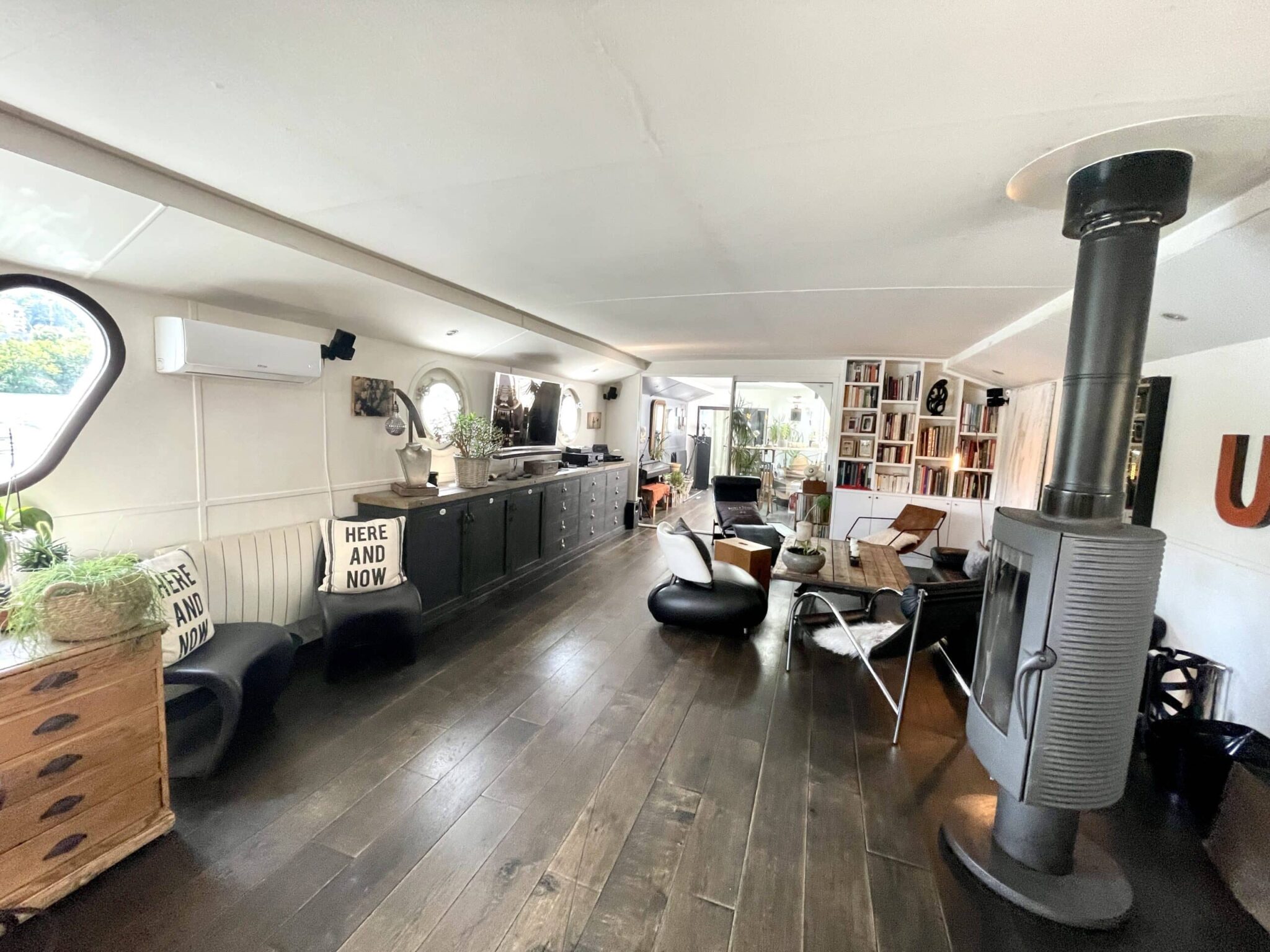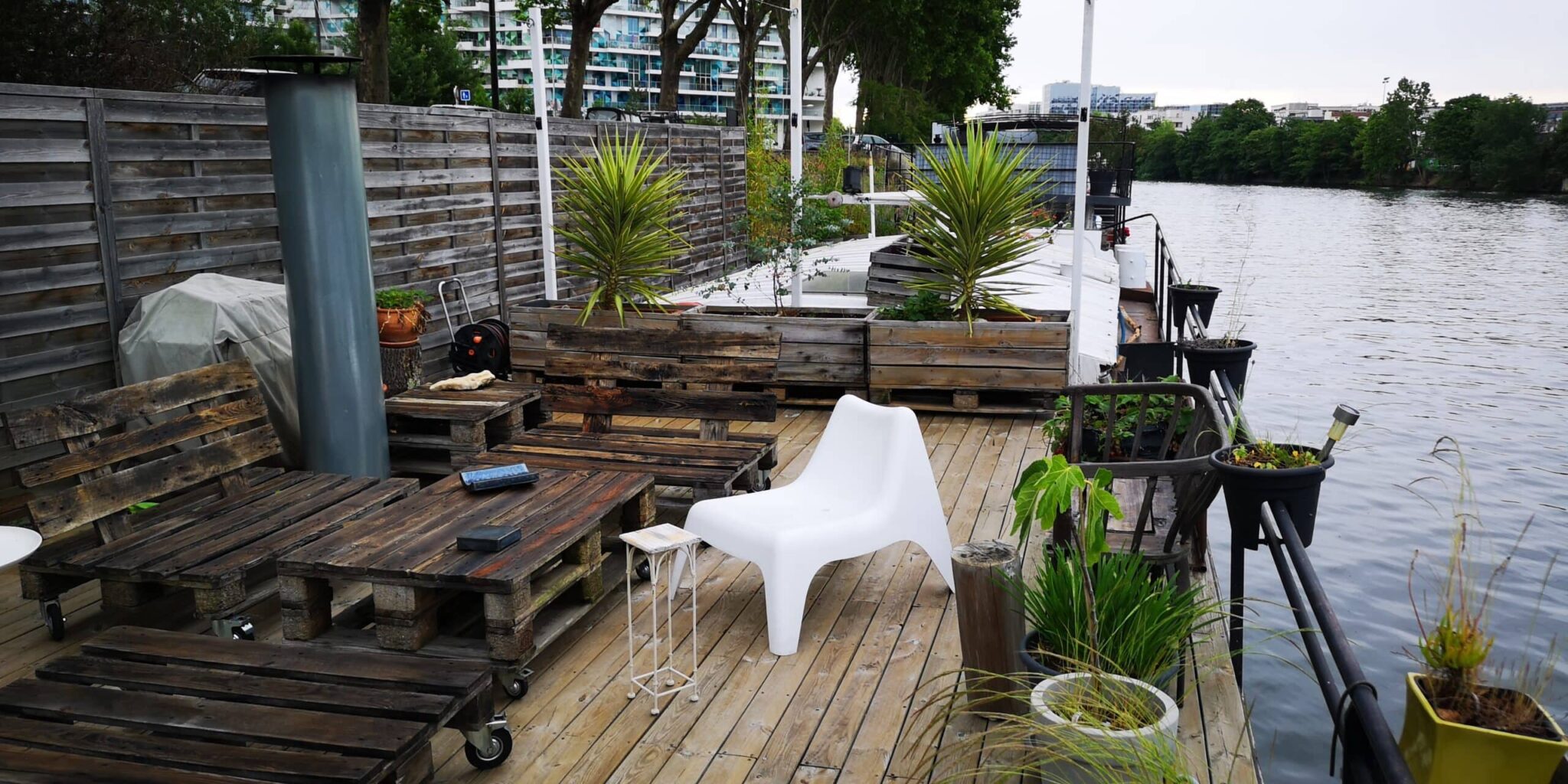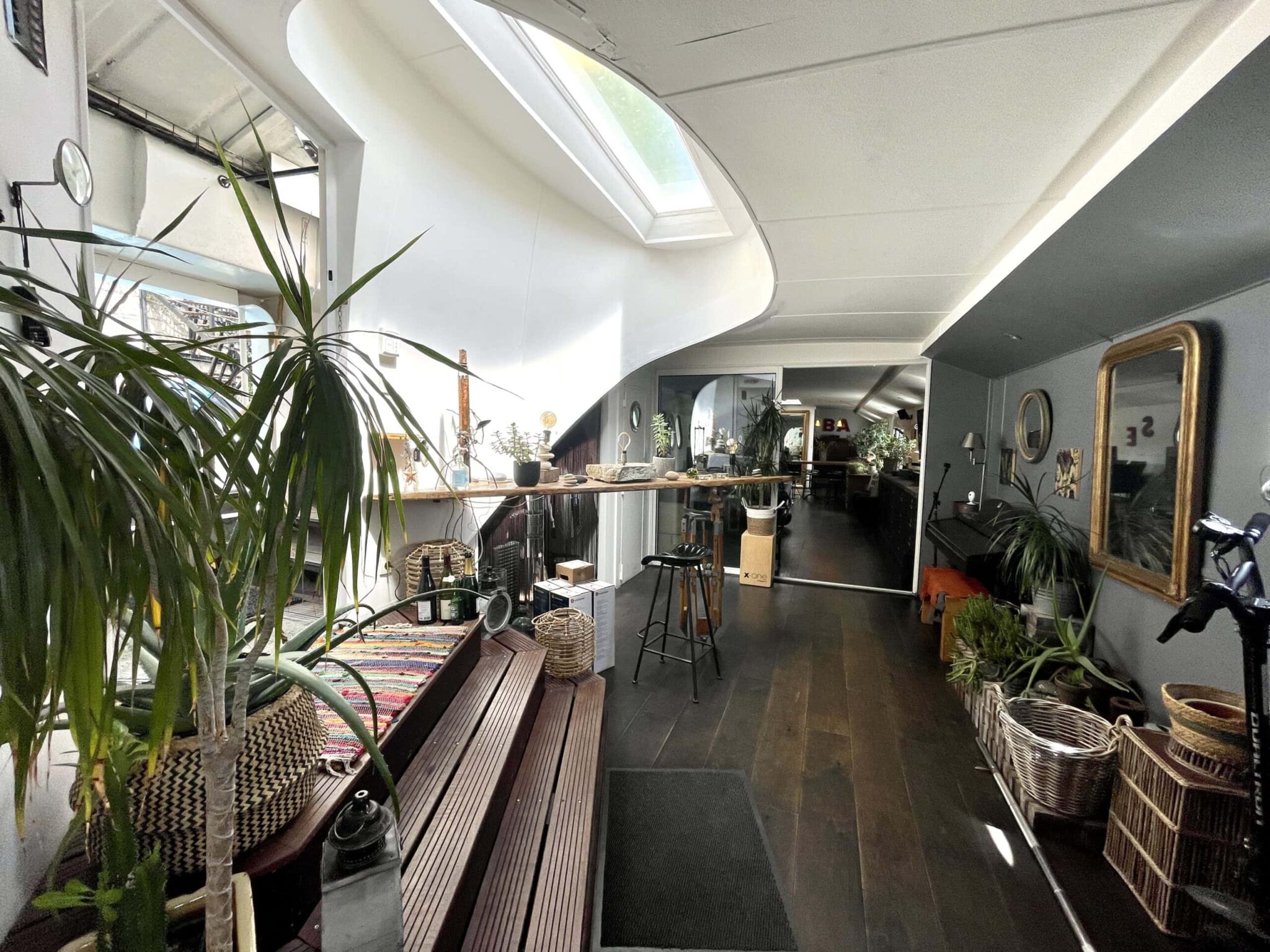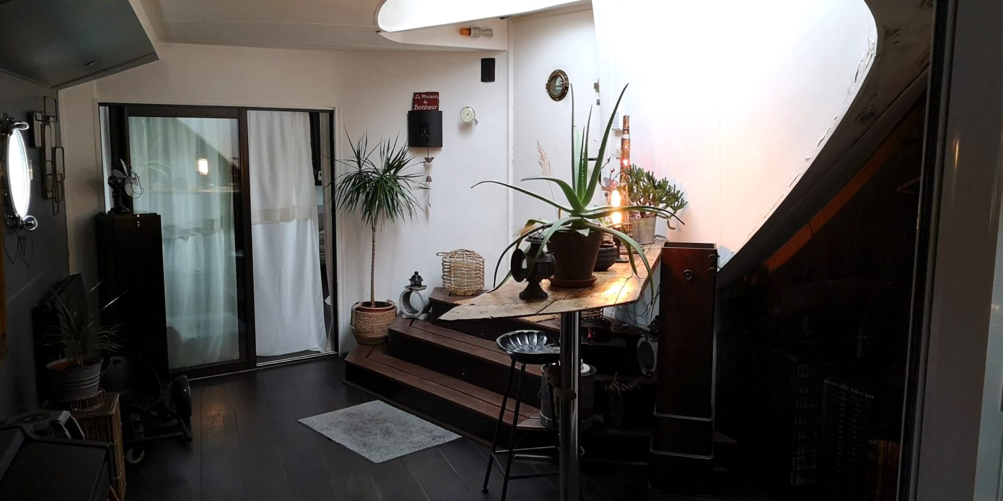 Une péniche aux charmes discrets et familiale de 180 m2 et 3 chambres sur les bords de Seine, à Boulogne Billancourt, dans les Hauts de Seine. A 10 minutes de Paris.