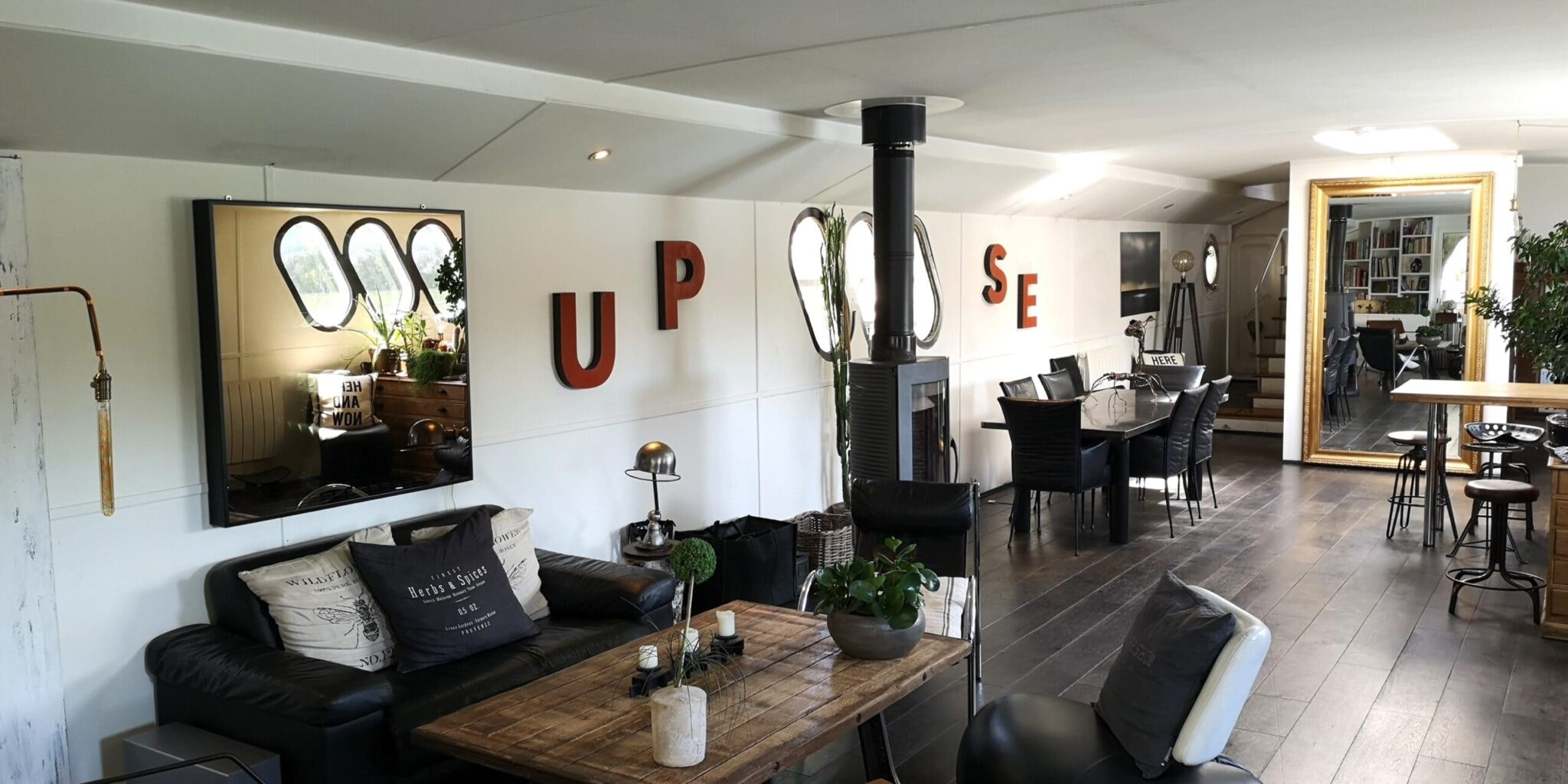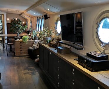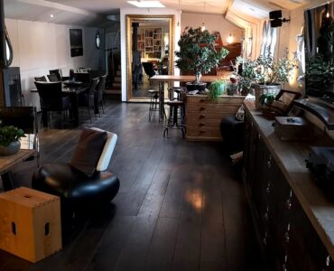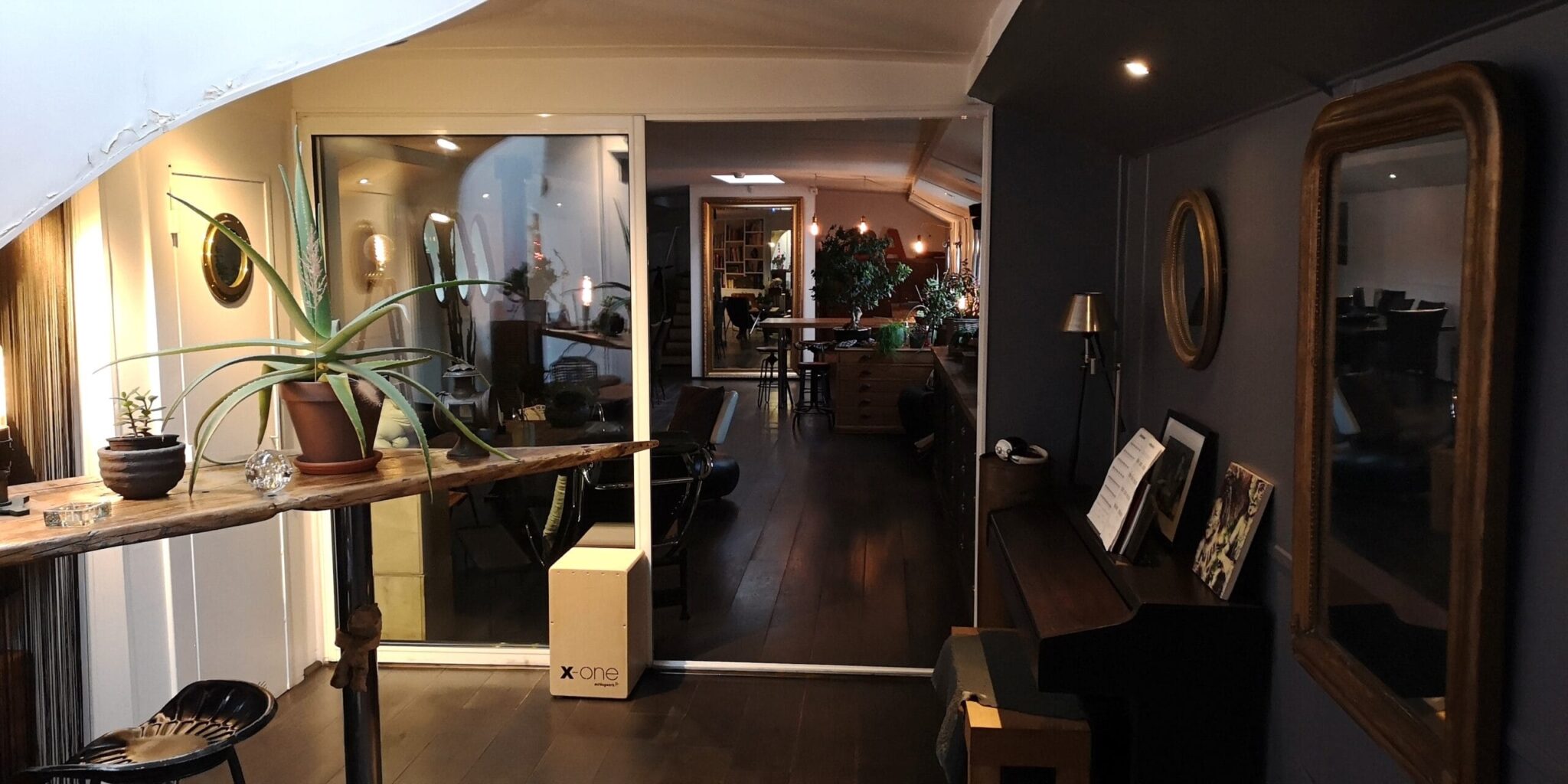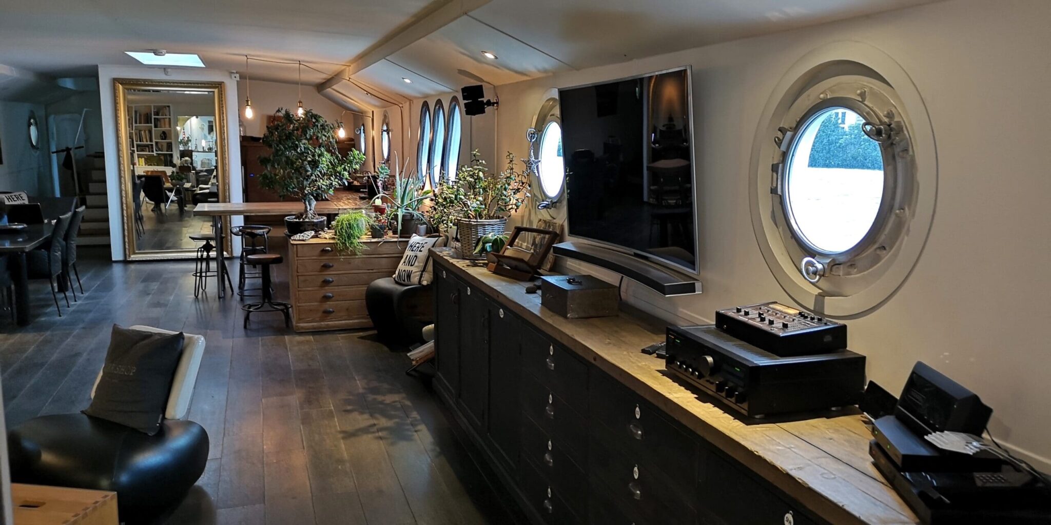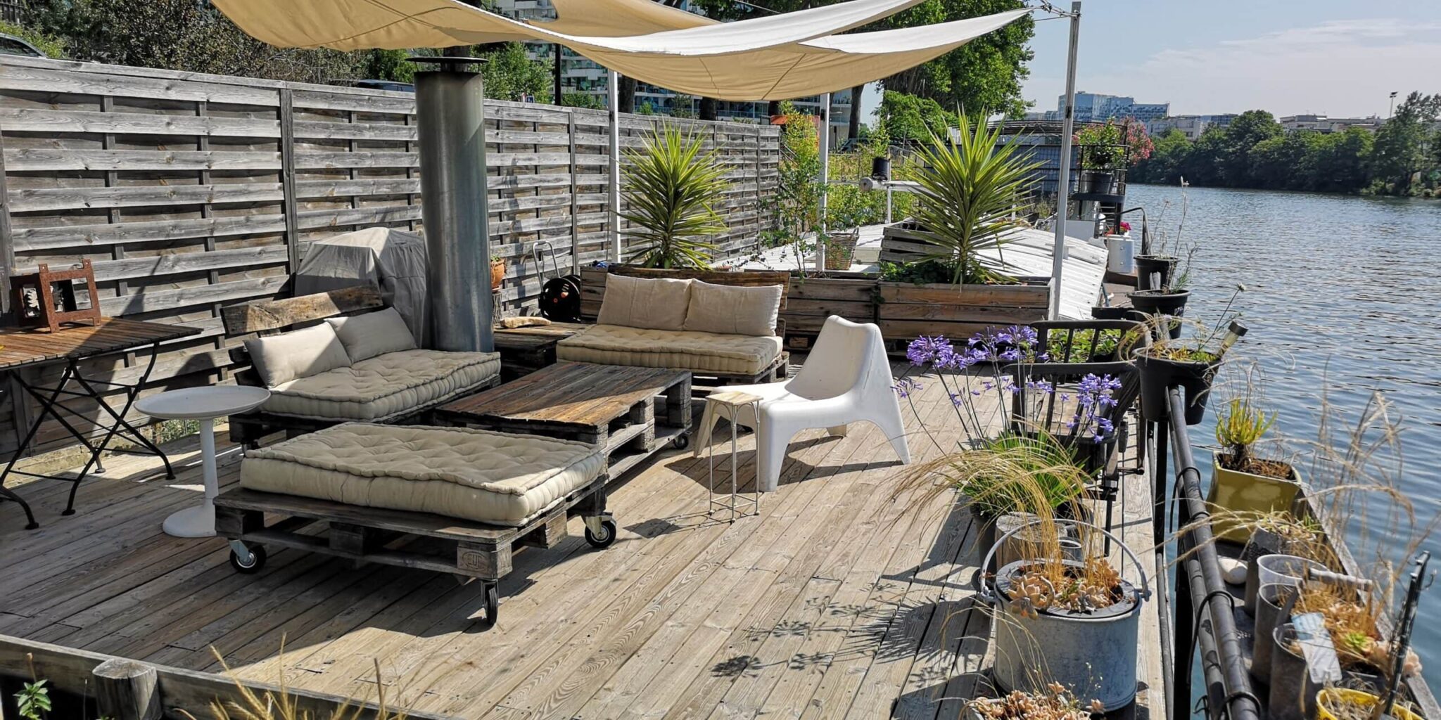 Une péniche aux charmes discrets et familiale de 180 m2 et 3 chambres sur les bords de Seine, à Boulogne Billancourt, dans les Hauts de Seine. A 10 minutes de Paris.